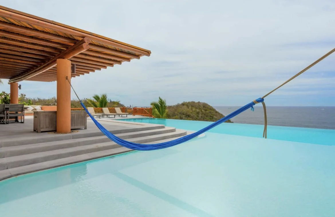 A luxe home nested in a secluded Careyes hilltop with panoramic ocean views, pool, tennis court & more.