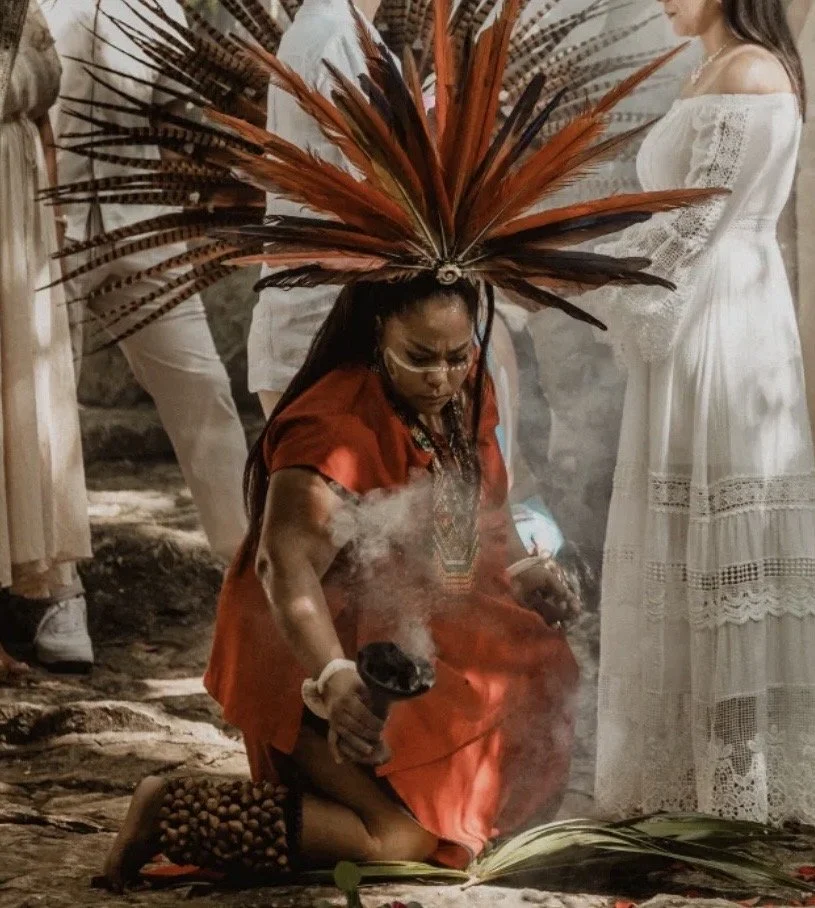 Alejandra is a Mexican ceremonial practitioner, fire guardian, dancer, artisan, and traditional medicine carrier with over two decades of experience rooted in pre-Hispanic traditions, herbal medicine, cacao ceremony, and ancestral craftsmanship. Her path began through pre-Hispanic dance and evolved into a lifelong ceremonial commitment integrating movement, ritual, and energetic service. Her knowledge of herbal medicine and ceremonial cacao was passed down through her maternal lineage, grounding her work in lived tradition. A traditional artisan for over 21 years, she creates ceremonial objects for energetic care using natural materials. Alejandra is devoted to preserving and sharing Mexico’s living ancestral traditions with respect, integrity, and continuity.
